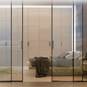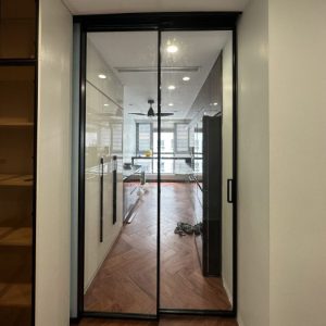 Cửa lùa Slim không ray dưới mang đến vẻ đẹp tối giản, hiện đại nhờ thiết kế gọn gàng và không có ray dưới sàn, tạo cảm giác liền mạch cho không gian.