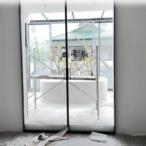 - Khung cửa: Làm từ chất liệu nhôm hoặc thép không gỉ cao cấp, mang lại độ bền cao, khả năng chống ăn mòn và chịu lực tốt.